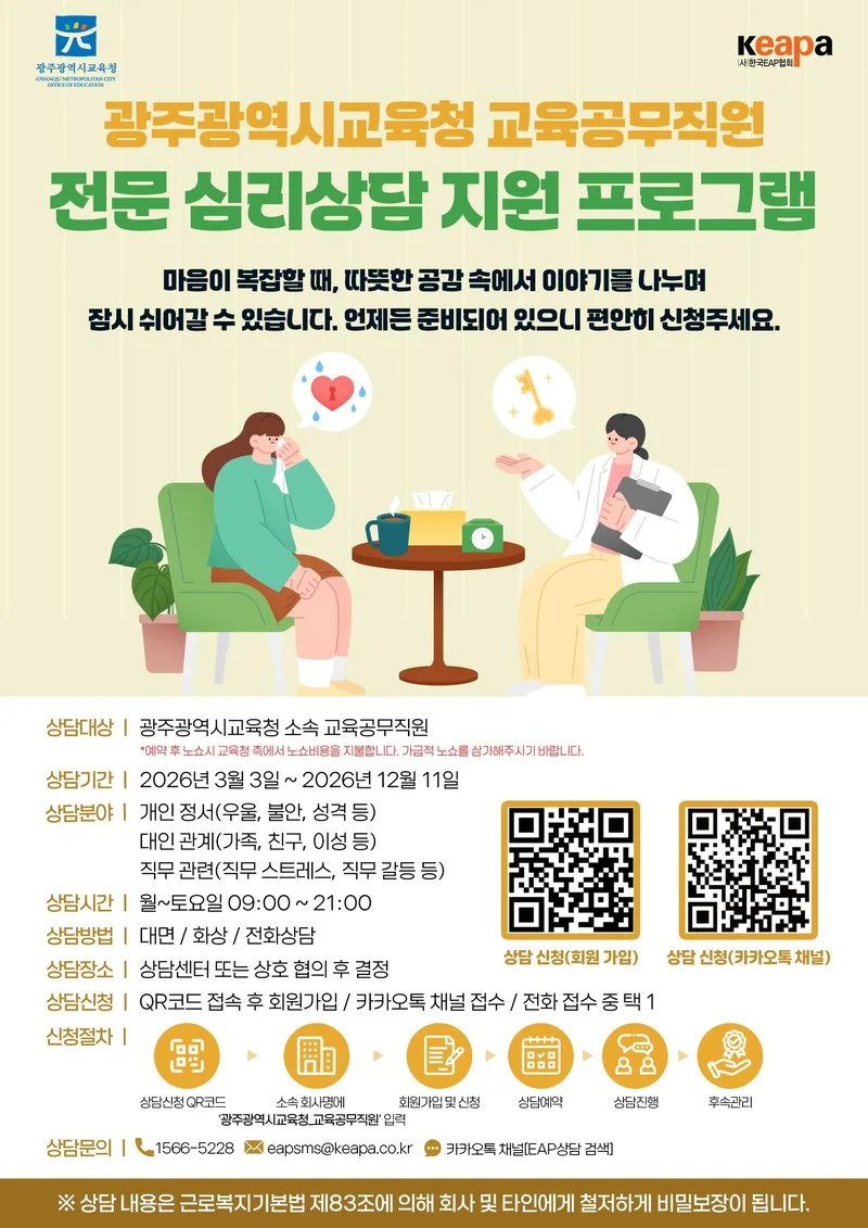 상담을 받고 싶은 교육공무직은 대면, 전화, 이메일 등으로 신청하면 된다.