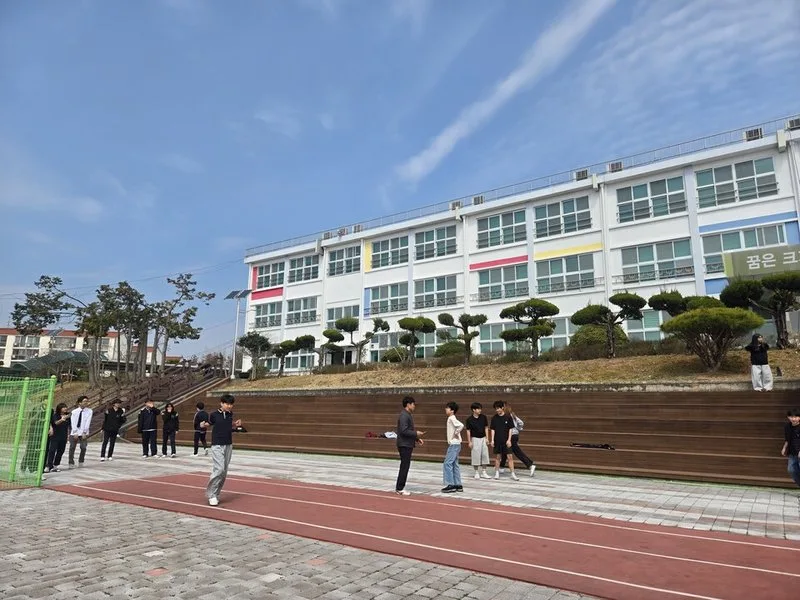학생들은 체육활동을 하면서, 또는 도서실에서 책을 읽으면서 음악 방송을 듣는다.