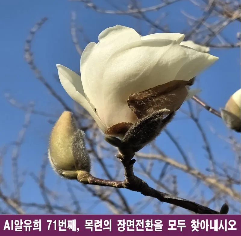 AI알유희 71번째, 목련꽃의 장면전환을 모두 찾아내시오.