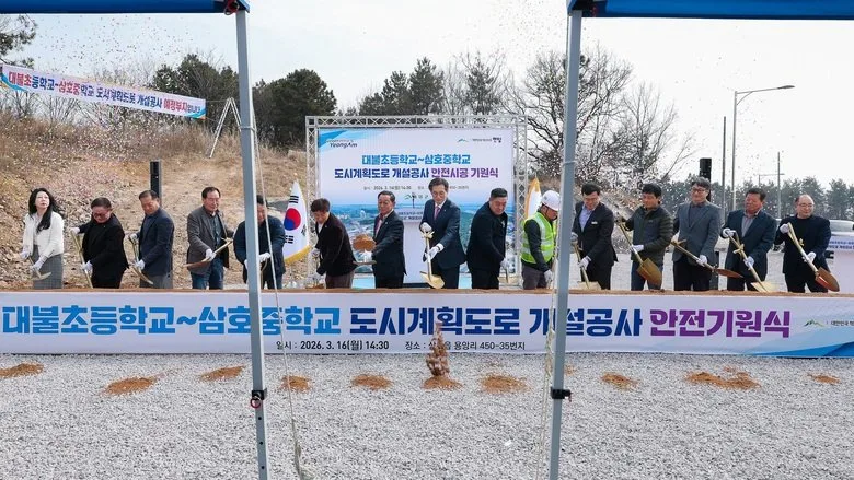 영암군이 16일 삼호읍 대불초등학교와 삼호중·고등학교를 잇는 도시계획도로 개설 공사 안전시공 기원식을 열었다.