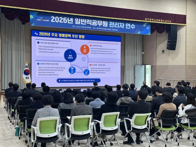 이정선 교육감은 “광주 교육의 변화는 현장에서 조직을 이끄는 관리자 여러분의 역할에 달려 있다”며 “특히 광주·전남 교육행정통합이라는 시대적 흐름 속에서 관리자들이 뛰어난 역량을 발휘해 성공적인 교육통합이 이뤄지길 바란다”고 말했다.