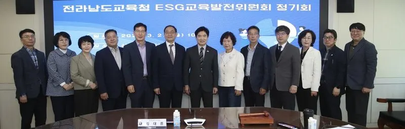 전라남도교육청이 3월 27일 전라남도교육청 상황실에서 ‘ESG 교육발전위원회 정기회’를 열고 ESG 기반 교육행정 추진 성과를 공유하고 정책 고도화 방향을 모색했다.