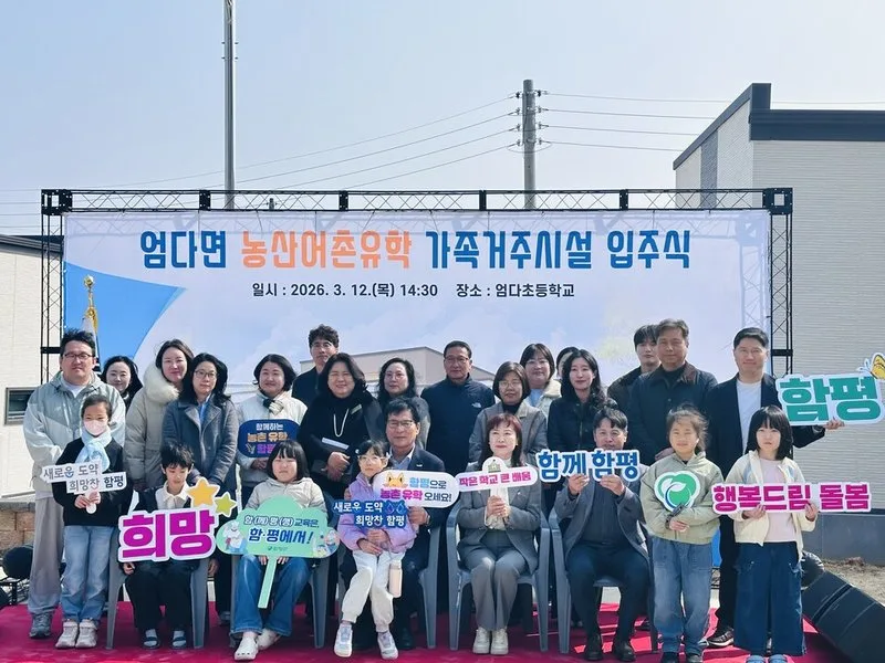 전라남도함평교육지원청(교육장 최은순)이 3월 12일 함평군 엄다면에서 열린 농산어촌유학 가족거주시설 입주식에 참석해 유학생 가족의 새로운 출발을 축하하고 지역 교육공동체와 함께 따뜻한 환영의 뜻을 전했다.