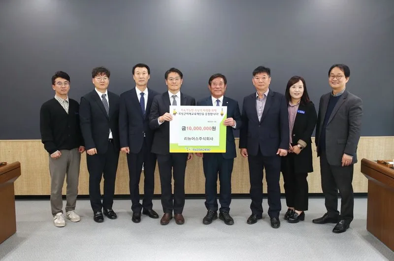 재단법인 곡성군미래교육재단이 27일 리뉴어스주식회사(대표 김정택)로부터 장학금 지원사업을 위한 기탁금 1,000만 원을 전달받았다고 전했다.