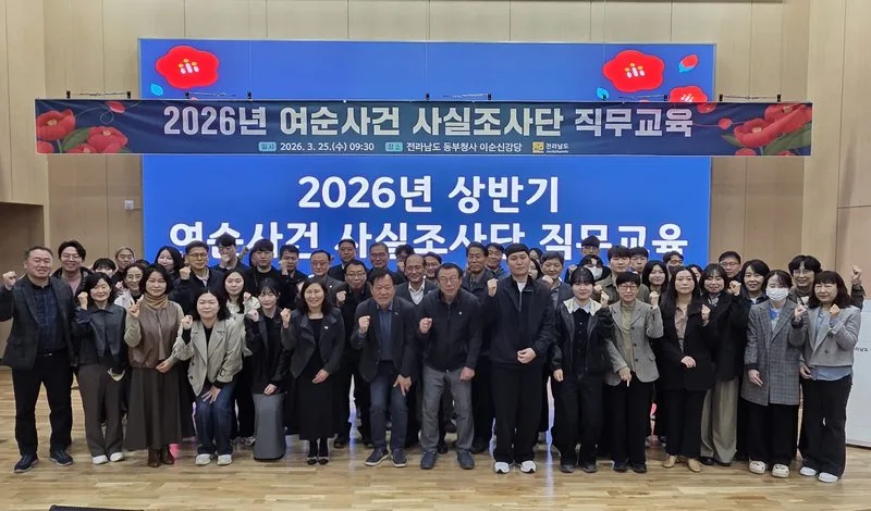 - 법정조사기한에 희생자·유족과 진상규명 처리 마무리 목표 - 전라남도는 26일까지 이틀간 여순사건 미처리 3천294건을 법정 조사기한에 처리하기 위해 ‘2026 상반기 여순사건 사실조사단 역량강화교육’을 했다.
