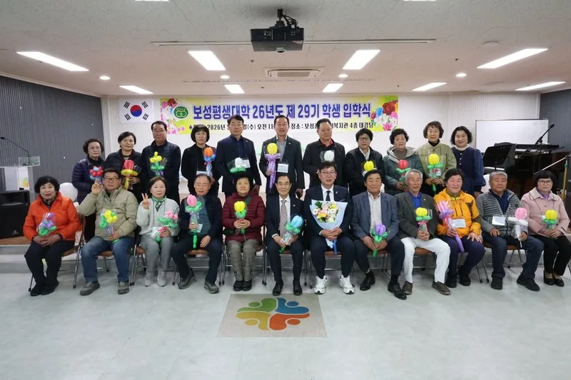 보성군, 보성평생대학 2026년 입학식 개최 보성군 어르신 배움의 전당 출발! … 제5대 김진문 학장 취임 보성군은 지난 18일 보성종합사회복지관 4층 대강당에서 ‘2026년 보성평생대학(원) 입학식’을 개최했다고 밝혔다.