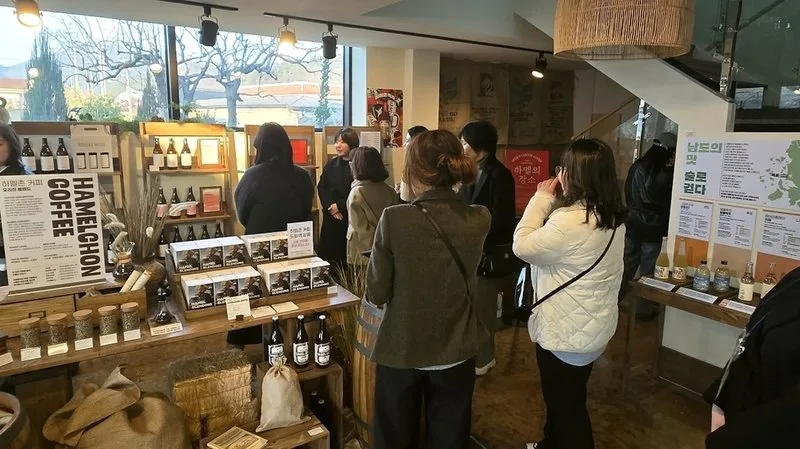 팝업스토어 공간은 방문객 동선과 체험 흐름을 고려해 ▲맥주 원료 체험 ▲ 하멜촌맥주+코리안 화이트 선물세트 구성 ▲브랜드·제품 소개(스토리) ▲맥주와 커피 시음·체험 ▲구매·상담 ▲‘남도의 맛, 술로 걷다’ 연계 콘텐츠로 구성했다.