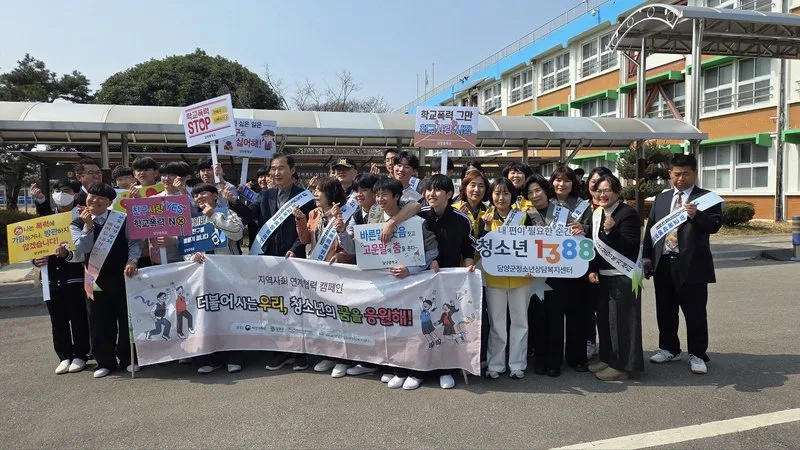 신학기를 맞아 열린 이번 캠페인에는 담양교육지원청(교육장 김진홍), 담양경찰서(서장 양수근), 담양중학교 교직원과 학생, 청소년상담복지센터 임직원들이 함께 참여했다.