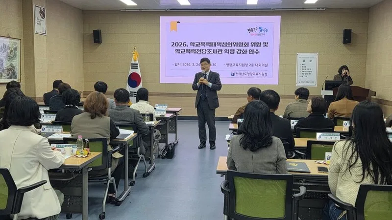 전라남도영광교육지원청(교육장 정병국)은 3월 24일 영광교육지원청 대회의실에서 학교폭력대책심의위원회 정기회와 학교폭력 전담조사관 및 심의위원 역량 강화 연수를 열고 공정하고 전문적인 학교폭력 대응 체계 구축에 나섰다.