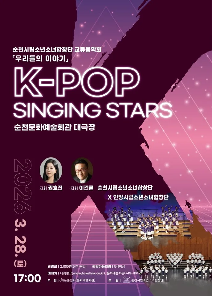 순천문화예술회관 관계자는 “이번 교류음악회는 지역 간 문화 교류를 통해 청소년들이 음악으로 소통하고 함께 성장하는 의미 있는 자리로 두 합창단이 만들어내는 아름다운 하모니 속에서 따뜻한 감동을 느끼길 바란다”고 말했다.