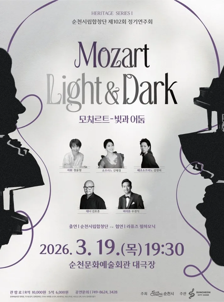순천시는 오는 19일 저녁 7시 30분, 순천문화예술회관 대극장에서 순천시립합창단 제102회 정기연주회 ‘모차르트의 빛과 어둠’을 개최한다고 밝혔다.