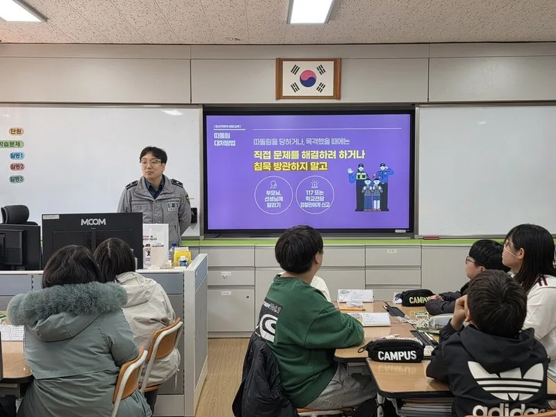이날 교육은 △ 학교전담경찰관(SPO) 역할 소개 △ 학교폭력의 주요 유형과 사례 안내 △ 학교폭력 발생 시 대처 방법 및 신고 절차 △ 디지털 안전 수칙 및 디지털 매개 성범죄 예방법을 주요 내용으로 실시되었다.
