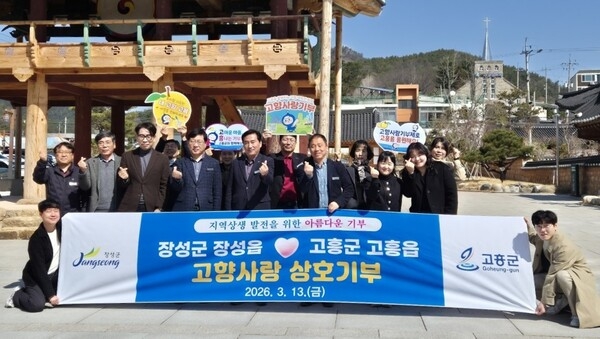 장성군 장성읍과 고흥군 고흥읍이 최근 고흥읍 행정복지센터에서 상호 고향사랑기부를 실천했다.