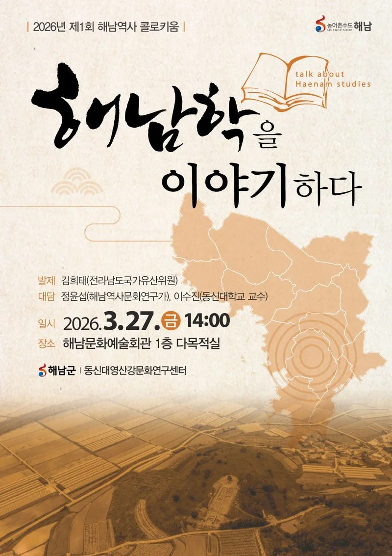 군은 오는 27일 오후 2시, 해남문화예술회관 다목적실에서 2026년 제1회 해남역사 콜로키움(토론회)‘해남학을 이야기하다’를 개최한다.
