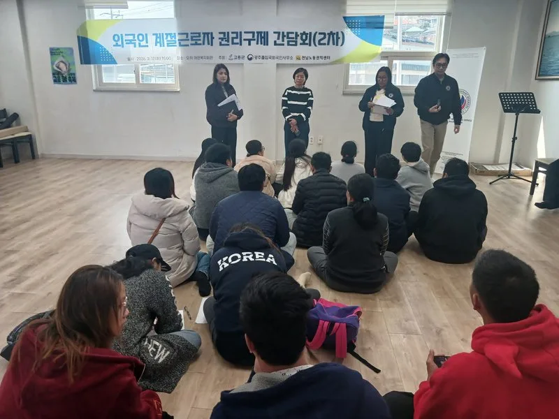 고흥군, 외국인 계절근로자 인권 보호 위한 ‘2차 권리구제 간담회’ 개최 고흥군, 외국인 계절근로자 인권 보호 위한 ‘2차 권리구제 간담회’ 개최 고흥군(농업정책과)은 외국인 계절근로자 인권 침해 논란과 관련해, 대상자 38명에 대한 심층 면담 및 간담회를 2회에 거쳐 실시하고, 최종 거취를 확정했다고 밝혔다.